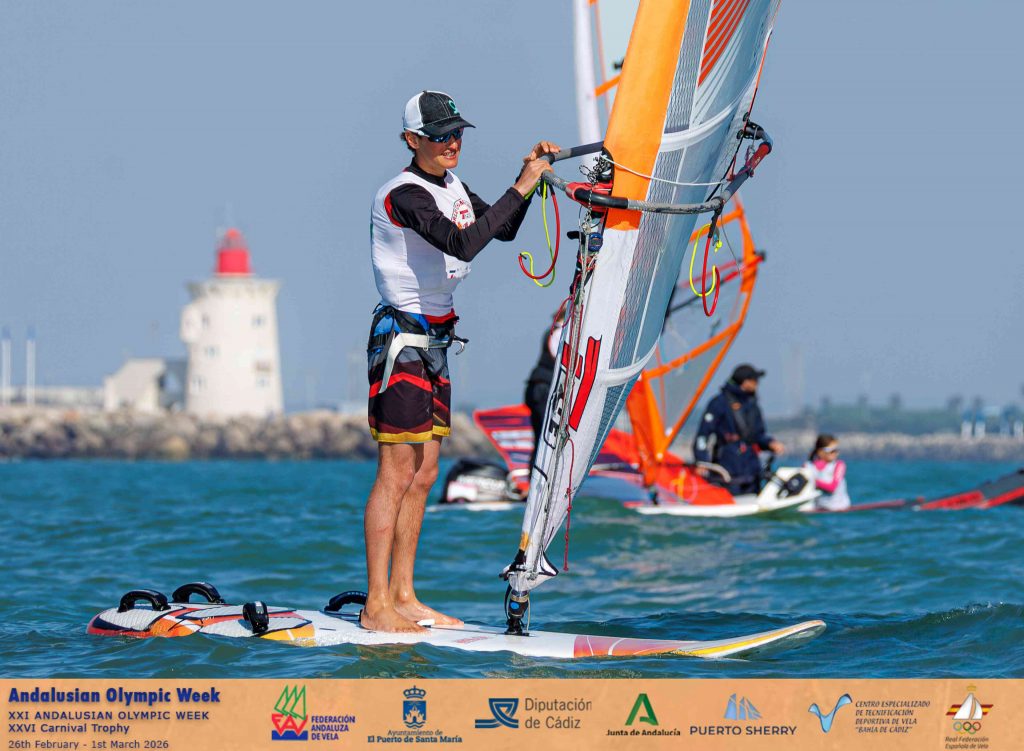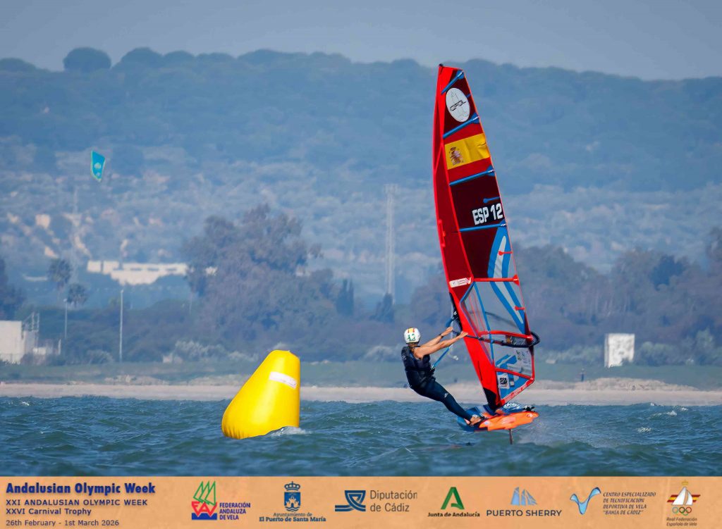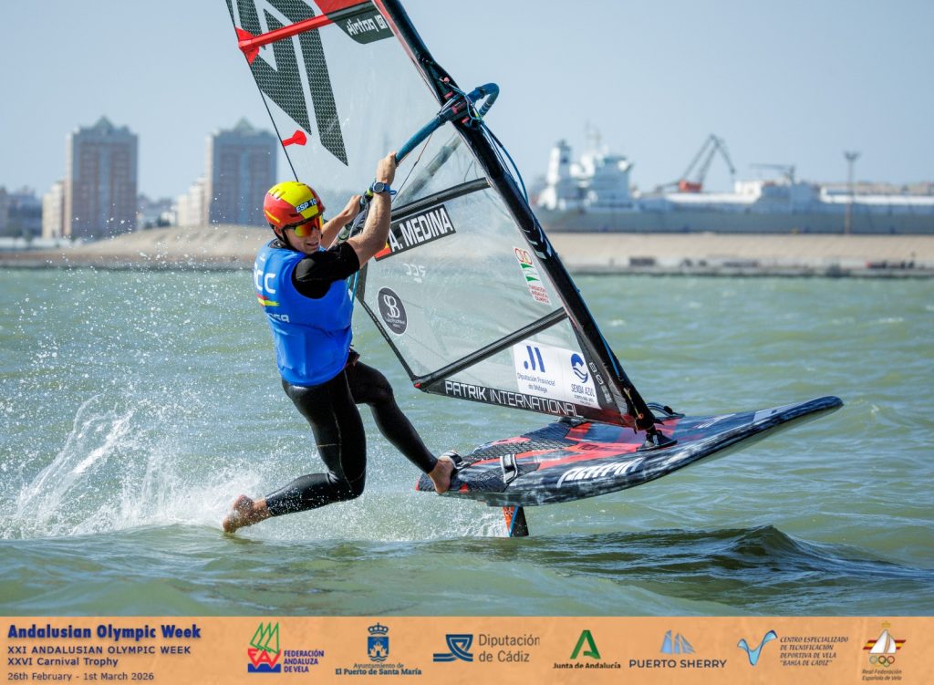 1 de marzo de 2026.- Levante por encima de 20 nudos y un final épico para la 21ª Semana Olímpica Andaluza en la bahía de Cádiz. Los andaluces Roberto Aguilar (ILCA 7), Antonio Medina (iQFOil), Pilar Lamadrid (iQFOil) y Curro Simbad Llorca (Techno) se proclaman campeones de las Copas de España; junto a ellos, la valenciana Martina Mantovani (iQFOil Sub 19), los baleares Enric Patiño (iQFOil Sub 17), Jorge Ruiz (iQFOil Juvenil), Joshua Castro (Techno Sub 15) y María Martorell (Techno Sub 13 femenino), los catalanes Julia Gómez (iQFOil Sub 23) y Biel Escudero (Techno Sub 13), la gallega Lindia Pousa (Techno Sub 17) y los canarios Alberto Citzia (Wingfoil, Campeonato de España) y Cristina Iglesias (Techno Sub 15) completan el palmarés nacional.