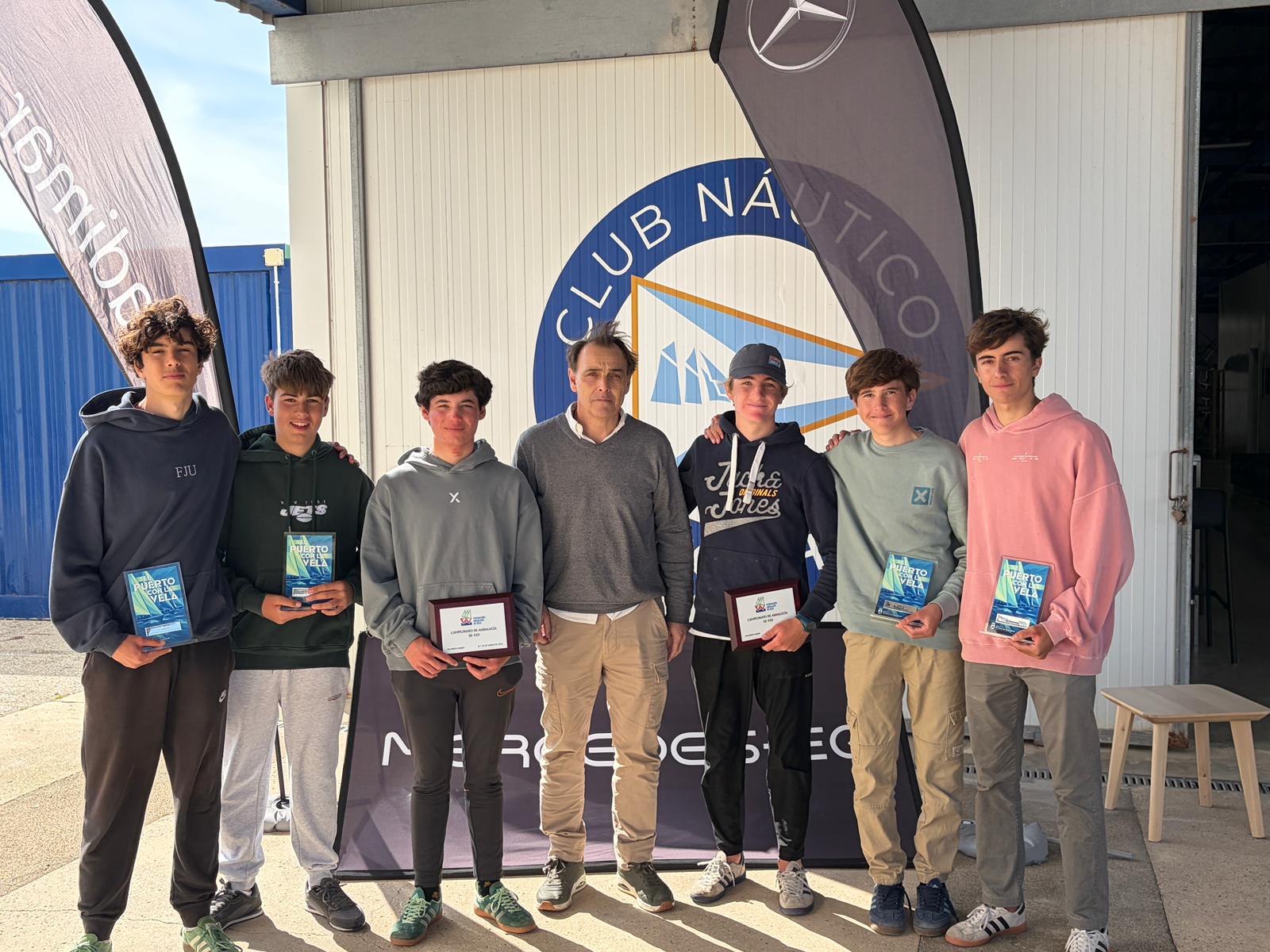 Tras la regata, el domingo se celebró la entrega de placas a los campeones de Andalucía de 420 2026 en las instalaciones del CN Puerto Sherry, en la playa asfáltica del puerto deportivo.